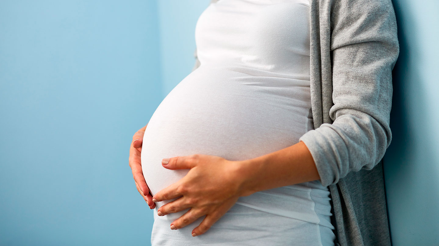 Hautpflege für Mama und Baby: Junge Frau hält Baby auf dem Arm. |